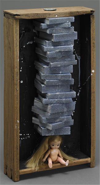 "As children we are taught to be afraid, we are told don't do this or that. We place incredible pressure on our youth." One of the drawers features a doll balancing twenty books on her head.