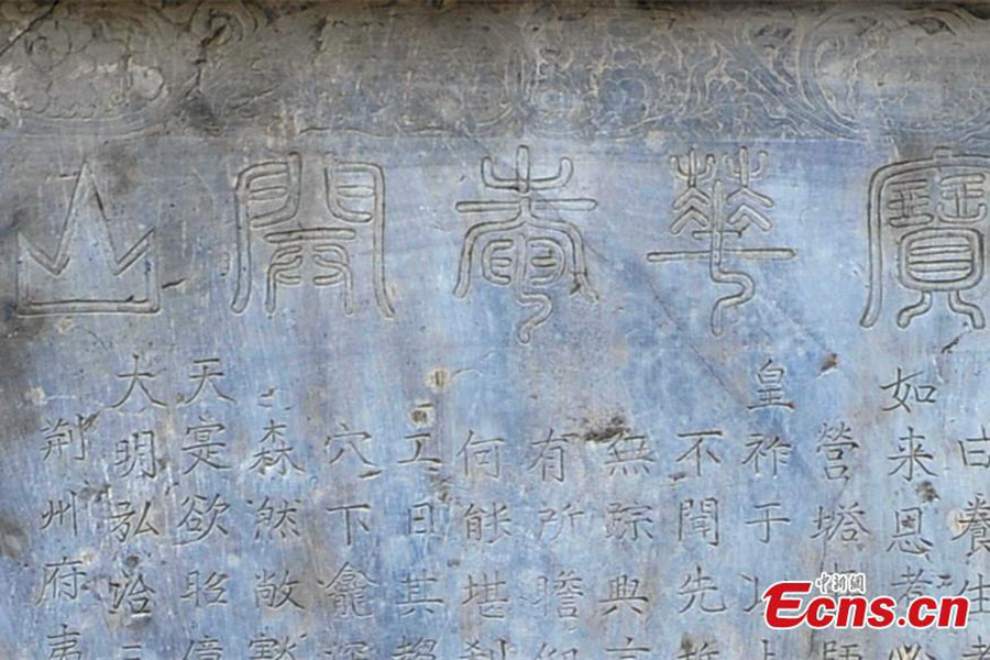 A relic of the Ming Dynasty (1368-1644) is found at a village in Yuan'an county, Central China's Hubei province, July 10, 2015. A stone tortoise was found first when construction work was taking place, and archeological workers later discovered a Buddhist pagoda.