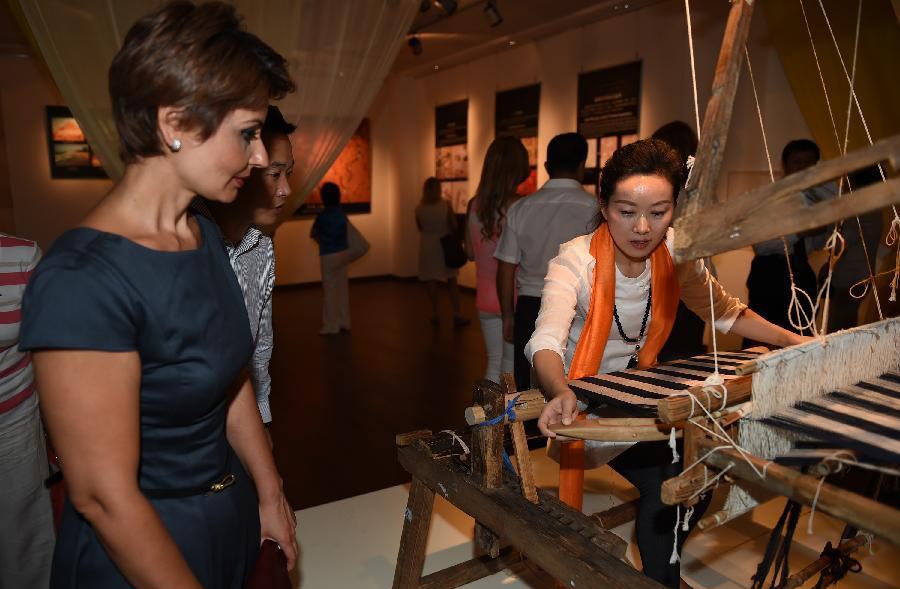 People watch the Chinese traditional textile technology at the opening ceremony of Zhejiang Culture Festival in Izmir, Turkey, July 28, 2015. [Photo/Xinhua]