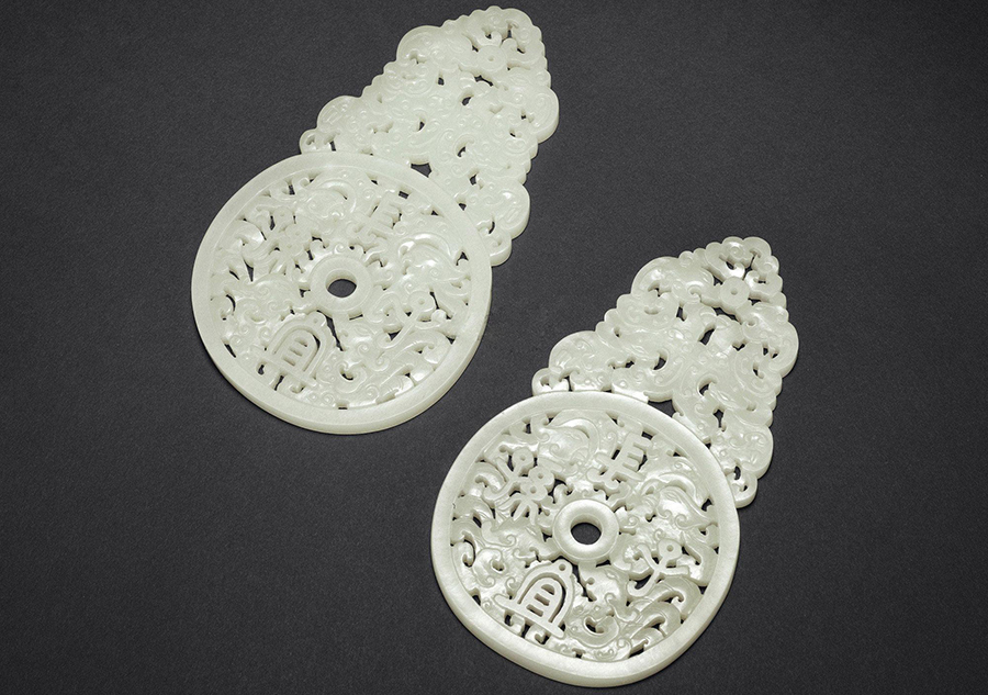 A pair of Qing Dynasty jade pendants sold for 1,840,000 yuan at the Rongbaozhai 2012 spring auctions. [Photo/ artron.net]