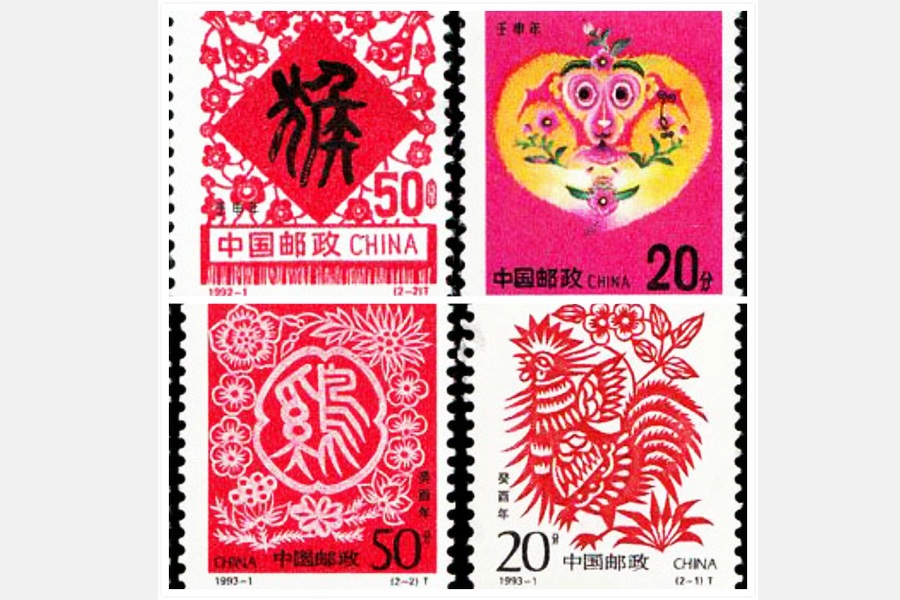 Four stamps from the second generation of Chinese zodiac stamps. [Photo/people.cn]