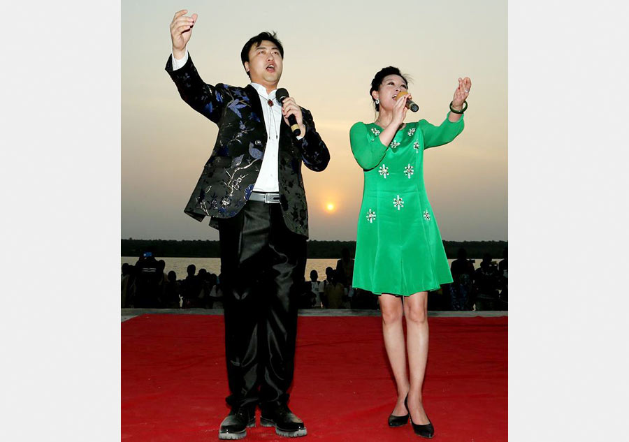 Singers from China's Liaoning Opera Theater perform as part of a series of performances ahead of the Spring Festival, in Cotonou, Benin, Jan 21, 2016. [Photo/Xinhua]