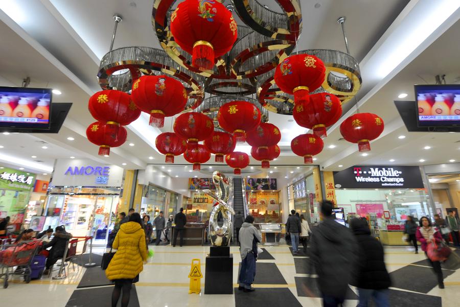 People shop in Chinatown, New York, the United States, on Feb 3, 2016. [Photo/Xinhua]