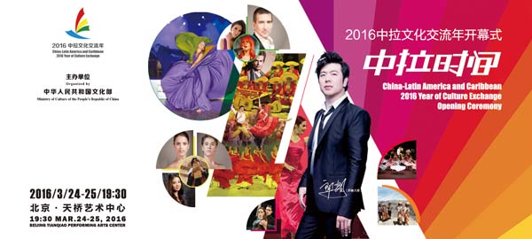 The Opening ceremony?will be?held in the Beijing Tianqiao Arts Center from March 24 to 25. Art groups from Latin America will have a close cooperation with Chinese world-class young pianist Lang Lang and the National Ballet of China to present the classic art works of China and Latin America.