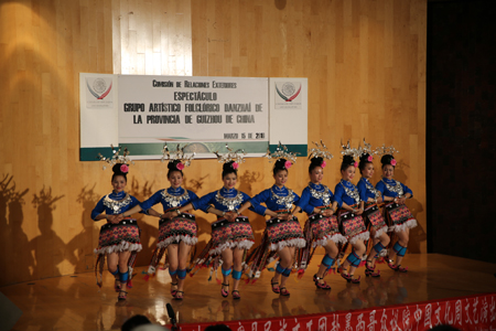 Artists from Guizhou province dance at the opening ceremony of the China Cultural Week in Mexico City, Mexico, March 15, 2016. [Photo/fmprc.gov.cn]