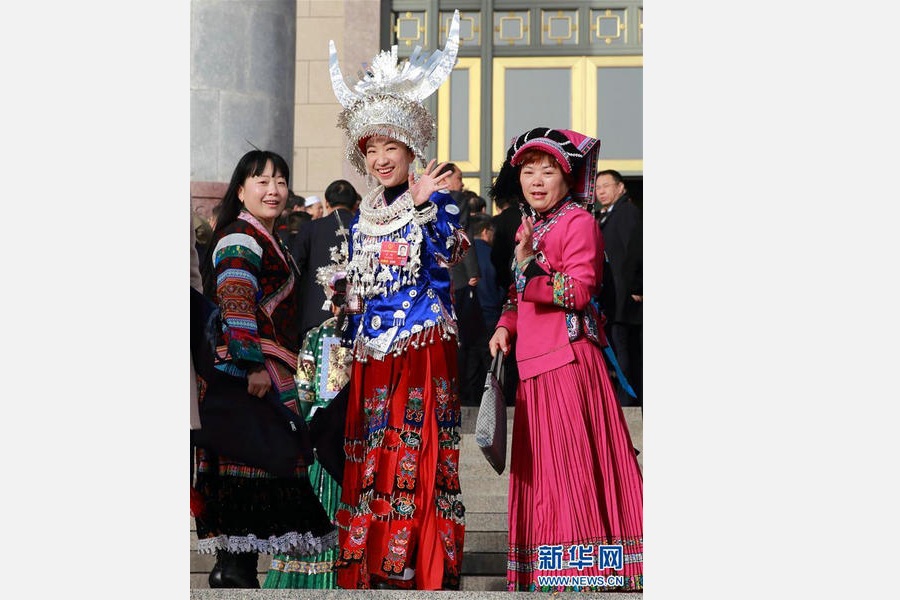 Lei Yan (middle), a deputy to the National People's Congress, Beijing, March 8, 2016. [Photo/Xinhua]