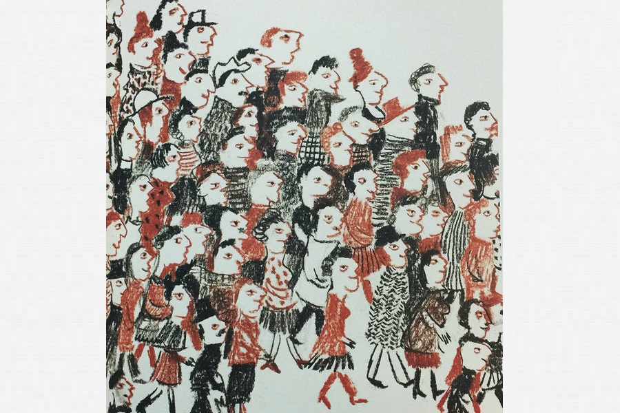 Entering the Theatre. A piece of work showed on the annual Bologna Illustrations Exhibition in China, July 11, 2016. [Photo/cri.cn]