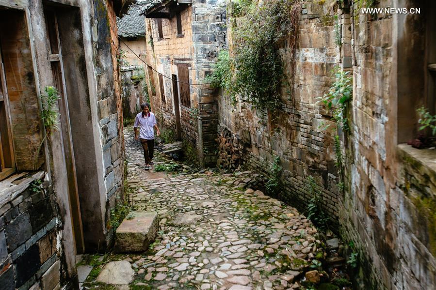 A resident walks at Mixi village of Jiubao town in Ruijin city, East China's Jiangxi province, July 12, 2016. Mixi village, with a history of more than 700 years, well preserves buildings dating back to the Ming (1368-1644) and Qing (1644-1911) dynasties, making it "a museum of traditional architectures". [Photo/Xinhua]