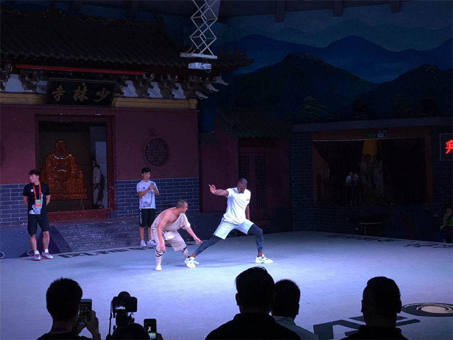 NBA star Dwyane Wade on Tuesday, July 19, 2016 visited the Shaolin Temple in Central China, which is considered the cradle of Chinese Kung Fu. Wade has also picked up some Kung Fu skills from a master. [Photo courtesy of Zhang Mengke]