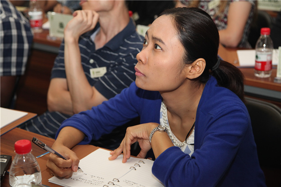 A Sinologist takes notes during a lecture by Professor Hu Angang on China’s 13th Five Year Plan, July 4, 2016. [Photo/Chinaculture.org]
