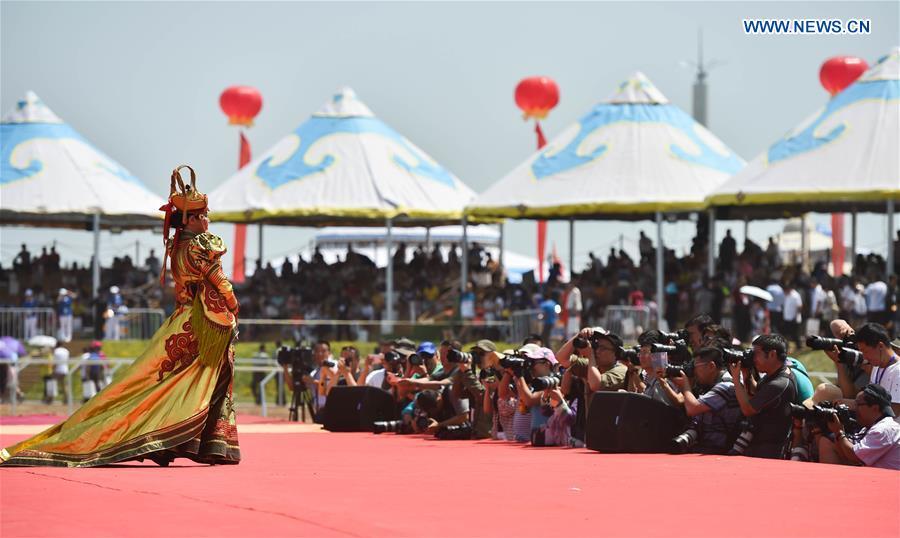 Journalists and tourists take photos of a model wearing traditional costumes during the annual Nadam Fair of Inner Mongolia autonomous region in Hohhot, North China's Inner Mongolia autonomous region, July 23, 2016. Nadam, Mongolian for entertainment or games, used to be a traditional sports meeting held by the Mongolian people to celebrate their harvest. Inner Mongolia government has been hosting the fair annually since 1990 to boost tourism and communicate Mongolian culture. [Photo/Xinhua]