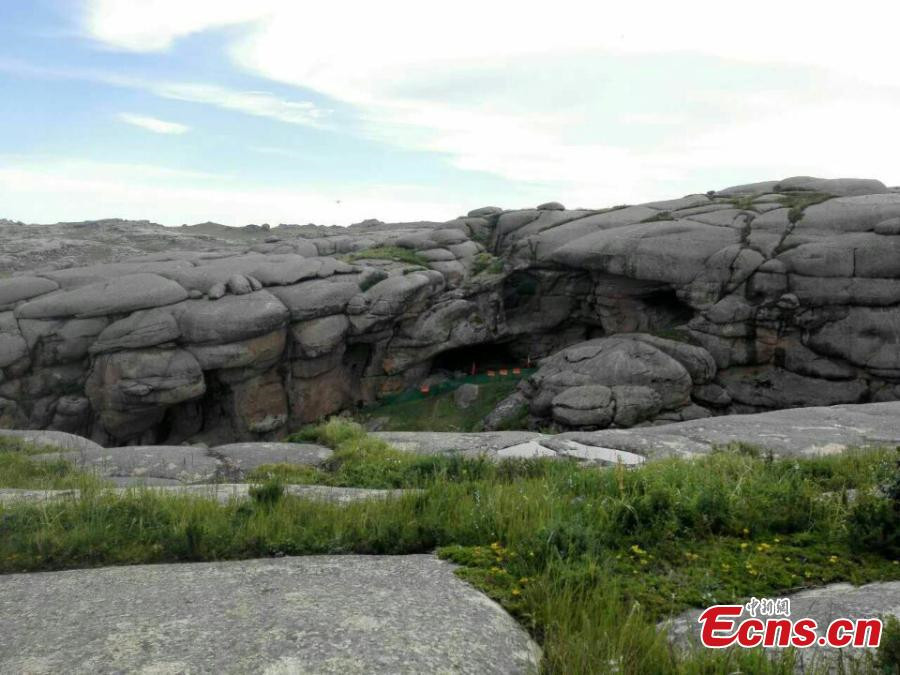 A view of the Tongtian Cave in Jeminay county, Northwest China's Xinjiang Uygur autonomous region. Archaeologists said the analysis of artifacts, including stone tools and charcoal particles, showed evidence of human activities in the cave as early as 10,000 years ago. [Photo/China News Service]