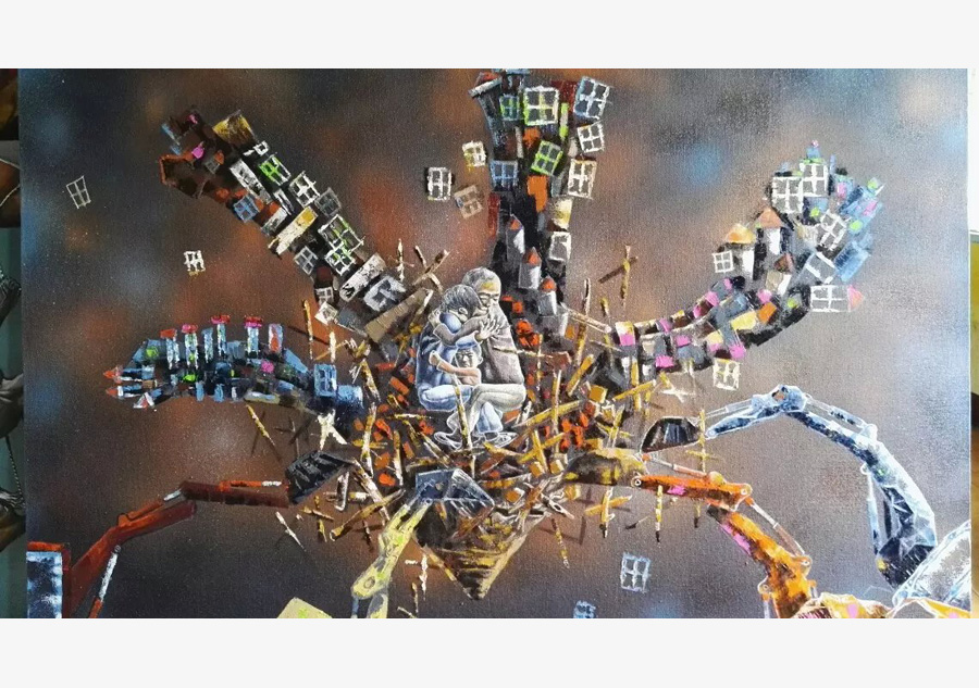 Xiong Qinghua's oil painting work. [Photo provided to China Daily]