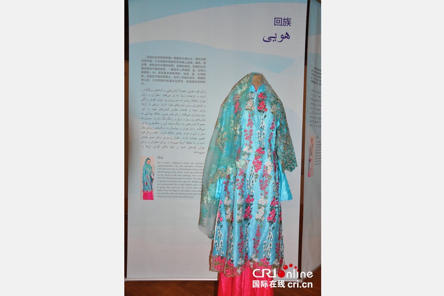 An exhibition of traditional clothes of ethnic groups from Xinjiang was held at the opening ceremony of "2016 Experience China in Iran-Cultural Exploration of Western China", Teheran, Iran, Aug 22, 2016. [Photo/cri.cn]