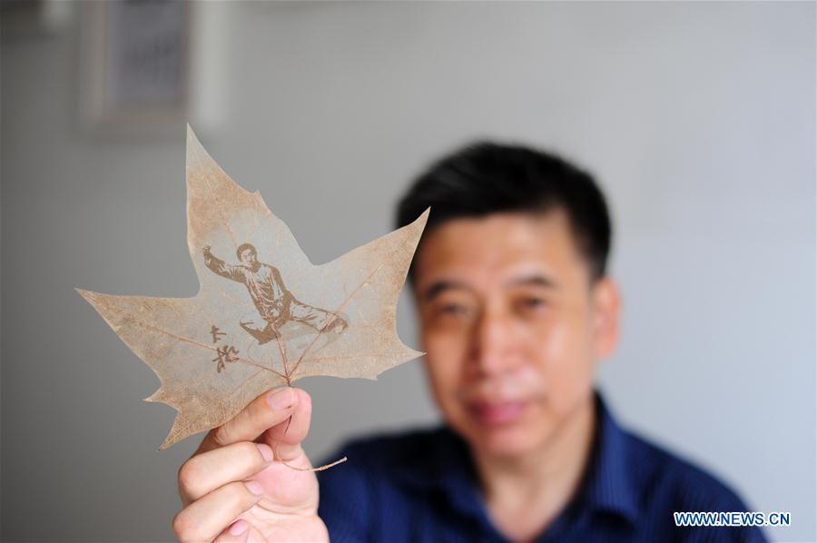 Chen Liming, the heir of Chen Leaf Miniatures, shows his work in Jiaozuo, Central China's Henan province, Aug 24, 2016. Chen Leaf Miniatures, originated in the Qing Dynasty (1644-1911), was listed as part of Henan's intangible cultural heritage. [Photo/Xinhua]