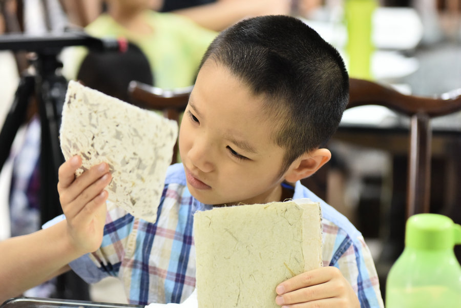A boy look at the exhibits carefully, trying to find out the source of the smell. [Photo/Asianewsphoto.com]
