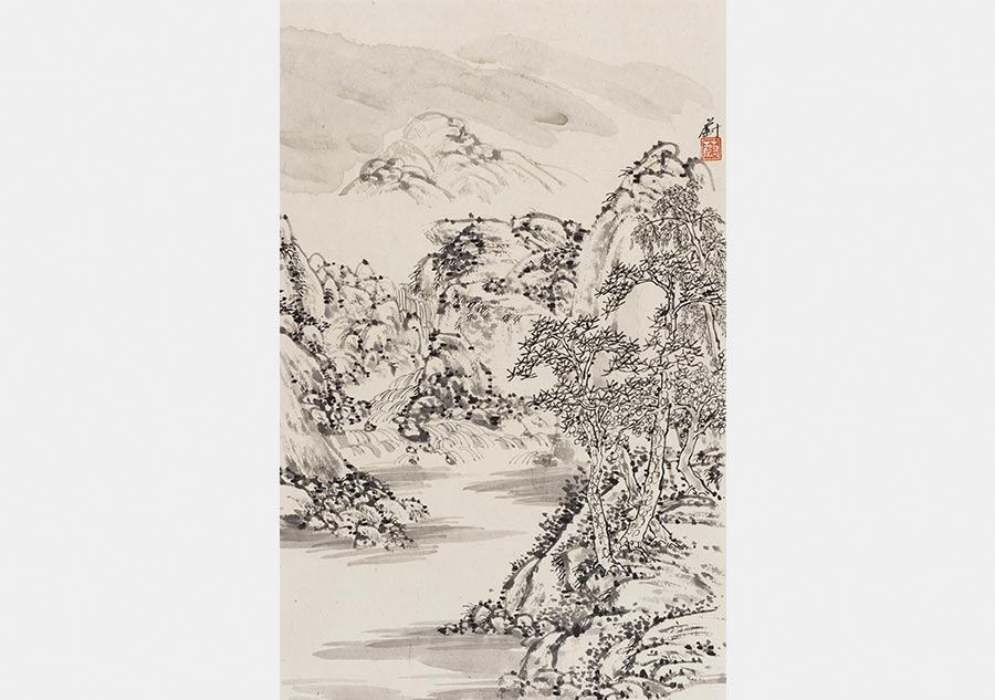 Ink painter Wen Wei's exhibition now held in Hangzhou, East China's Zhejiang province, combines her devotion to traditional Chinese painting with a love of Hangzhou's poetic scenery. [Photo provided to China Daily]