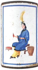 A block painting from the Textile Museum and the Decorative and Arts Museum in Lyon features a woman dressed in Chinese costume preparing thread.[Photo provided to China Daily] |