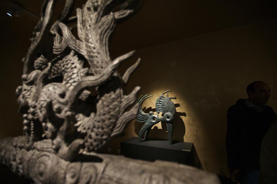 Photo taken on Oct 27, 2016 shows the artwork of Han Meilin during the exhibition in Venice, Italy. The exhibition "The World of Han Meilin" kicked off in Venice on Thursday and will last till Feb 28, 2017. As a global tour exhibition, it will also be held in Paris and Beijing.[Photo/Xinhua] |