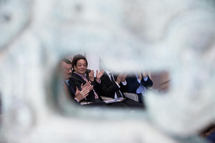 Artist Han Meilin is seen at the opening ceremony of the exhibition in Venice, Italy on Oct 27, 2016. The exhibition "The World of Han Meilin" kicked off in Venice on Thursday and will last till Feb 28, 2017. As a global tour exhibition, it will also be held in Paris and Beijing.[Photo/Xinhua] |