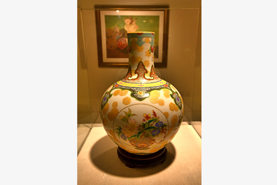 Enameled porcelain with vault-of-heaven-shaped vase [Photo by Zhang Xingjian/chinadaily.com.cn]