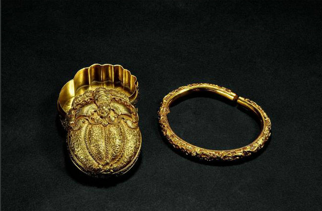 A gold compact (left) from the Qing Dynasty (1644-1911). [Photo/Artron.net]
