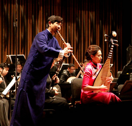 Artists from the China National Traditional Orchestra performed classic traditional Chinese music after the new conference in Mexico, Dec 3, 2016. [Photo/Xinhua]