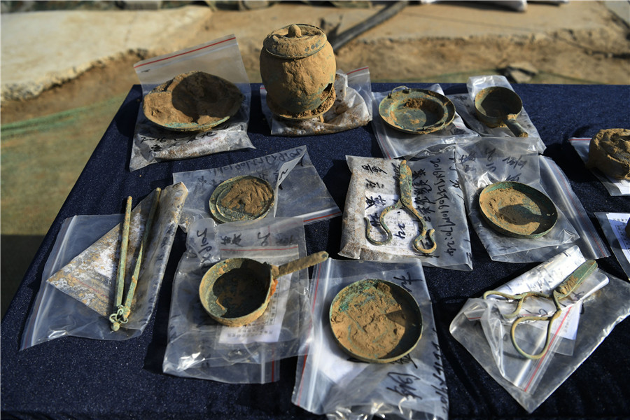 Tools for daily use are excavated from King Zhouyi's tomb in Xingyang city, Central China's Henan province, Dec 6, 2016. [Photo/Xinhua]