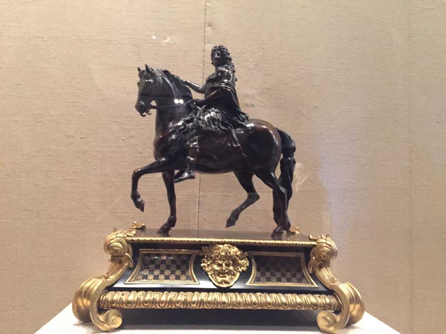A bronze statue of Louis XIV on horseback is showcased at the Invention of Louvre exhibition at the National Museum of China in Beijing, Jan 13, 2017. [Photo by Li Ping/chinadaily.com.cn] |