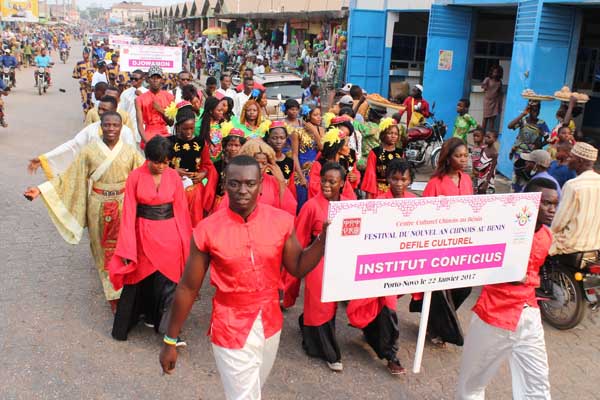 Local people participate in a grand Chinese New Year parade in Porto-Novo, Benin's political capital, Jan 22, 2017. [Photo/Chinaculture.org]