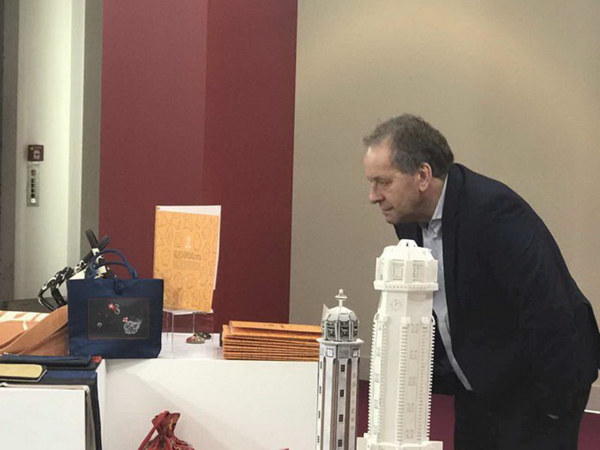 A visitor takes a closer look at some of the Chinese cultural products at the Paperworld fair in Frankfurt. [Photo/Chinaculture.org]