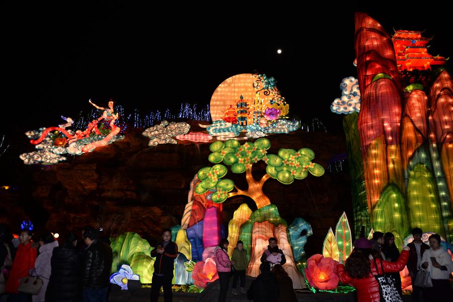 Tourists visit a lantern fair ahead of the Lantern Festival in the Tang Paradise in Xi'an, capital of Northwest China's Shaanxi province, Feb 9, 2017. [Photo/Xinhua]