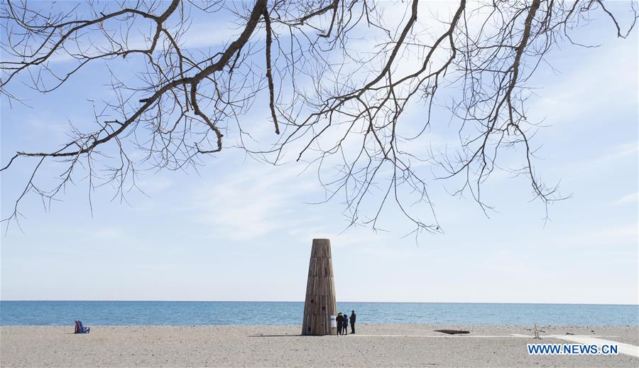 The art installation "Beacon" is seen during the 2017 Winter Stations Design Exhibition in Toronto, Canada, March 23, 2017. Taking place from Feb 20 to March 27, this annual outdoor exhibit of art installations shows 8 excellent winter stations selected from more than 350 designs from around the world. [Photo/Xinhua]