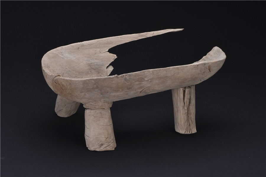 A wooden plate is unearthed at the site of the ancient wall ruins in Northwest China's Lop Nor Desert, March 10, 2017. [Photo/Xinhua]