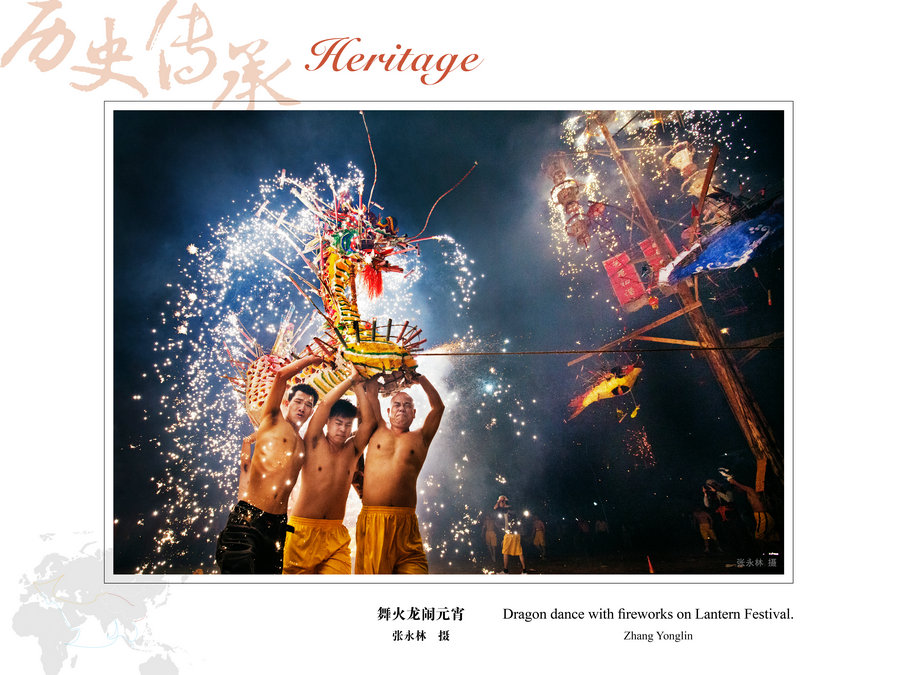 Dragon dance with fireworks on Lantern Festival, by Zhang Yonglin. [Photo/Chinaculture.org]