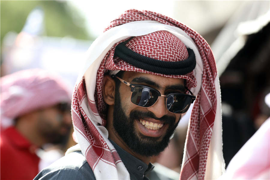 A student from Iran enjoying the international cultural festival at the University of International Business and Economics in Beijing, April 27, 2017.[Photo by Zhu Xingxin/Asianewsphoto] |
