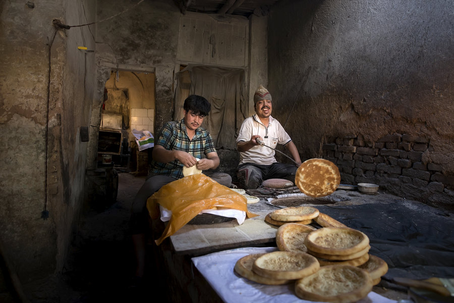 Two lads with crusty pancakes, by Li Xiangdong. [Photo/Chinaculture.org]