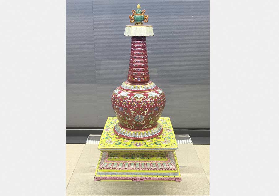 A replica of fencai Buddhism pagoda in Qianlong period of Qing Dynasty. [Photo by Bi Nan/chinadaily.com.cn]