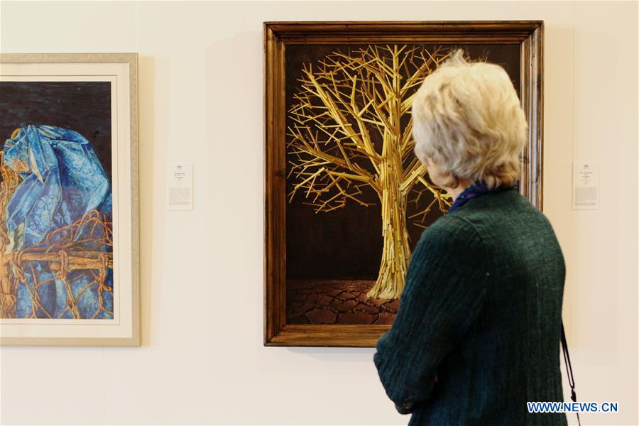 A visitor enjoys an exhibition of Chinese contemporary art in Helsinki, Finland, on June 29, 2017. The event "Experience China in Finland 2017" kicked off in Helsinki on Thursday. [Photo/Xinhua]