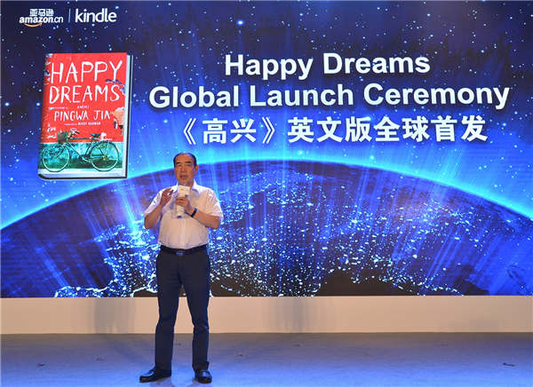 Writer Jia Pingwa attends the launch ceremony of the English-language version of his novel, Happy Dreams. The book tells the story of migrant workers in cities. [Photo provided to China Daily] |