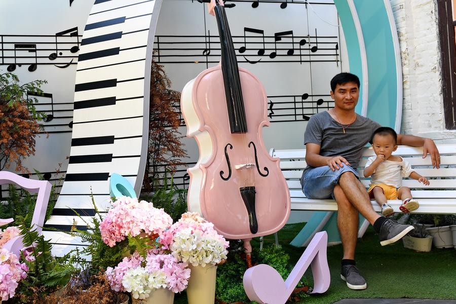 A father and his son take a rest in Gulangyu island in Xiamen city, Southeast China's Fujian province, Aug 29, 2017. [Photo/Xinhua]