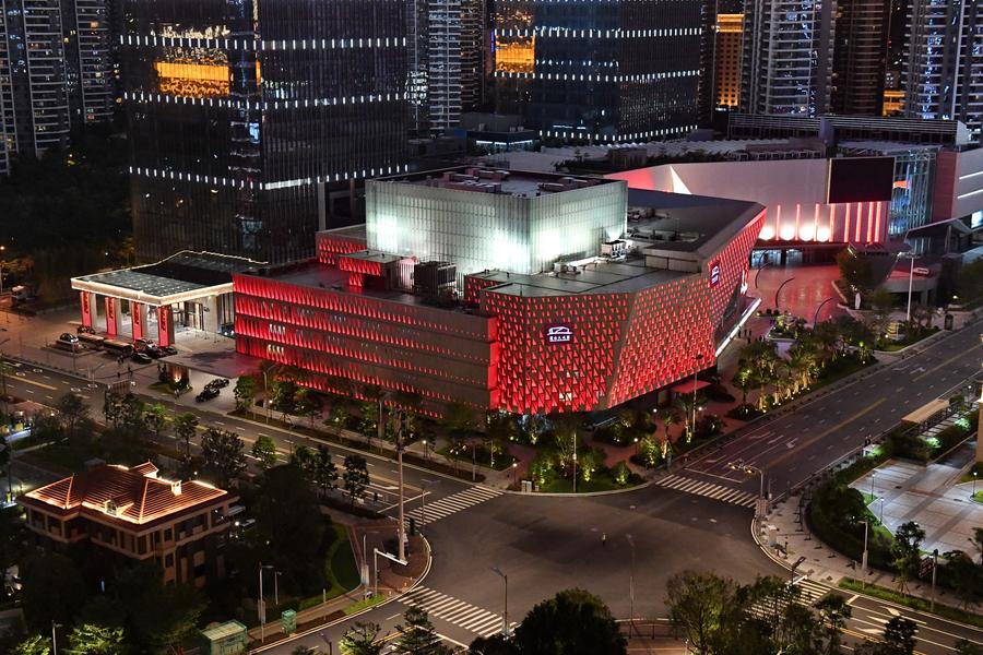 The Banlam Grand Theater and its surrounds lit up at night in Xiamen, host city of the BRICS Summit. Xiamen is a coastal city in Southeast China's Fujian province and is renowned for its agreeable climate, island tourism, Hokkien culture, as well as a variety of leisure options.[Photo/Xinhua]