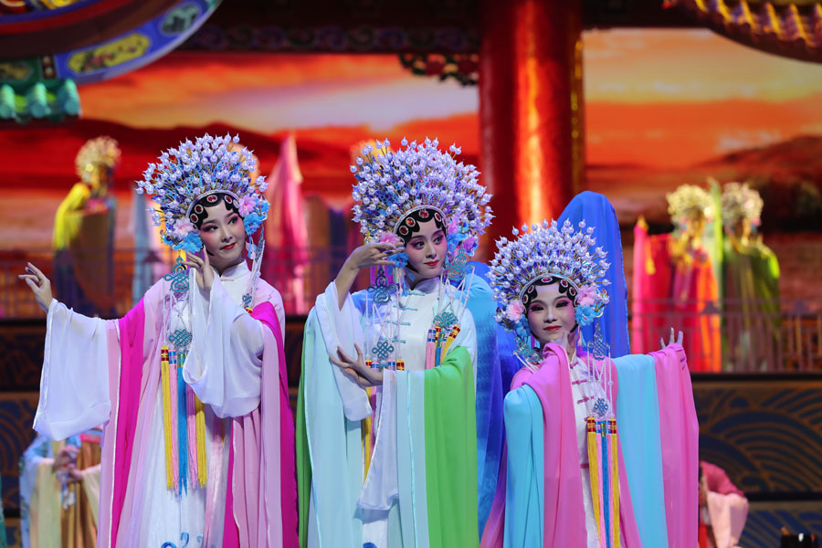 Performers sing traditional Fujian opera in an evening gala for the 2017 BRICS Summit and the Dialogue of Emerging Market and Developing Countries in Xiamen, East China's Fujian province, Sept 4, 2017. [Photo/Xinhua]