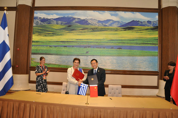 After the meeting, the two sides jointly signed the "Memorandum of Understanding for Co-organizing the China-Greece Year of Cultural Exchanges and Cultural and Creative Industries Cooperation Between the Ministry of Culture of the People's Republic of China and the Ministry of Culture and Sports of the Hellenic Republic".