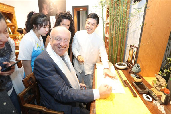 A foreigner learns Chinese calligraphy. [Photo by Wang Zhenbo/Chinaculture.org]