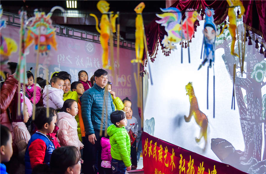 Visitor view Zhengzhou shadow play during the expo in Luoyang , Henan province, Dec 9, 2017. [Photo by Huang Zhengwei/Asianewsphoto]