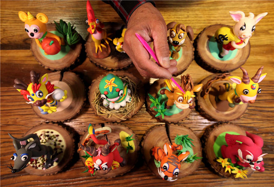 Kan Zongqin, 61-year-old folk artist from Zaozhuang city of Shandong province, created a series of dough sculptures themed on the 12 Chinese zodiac signs recently, to embrace the upcoming 2018.