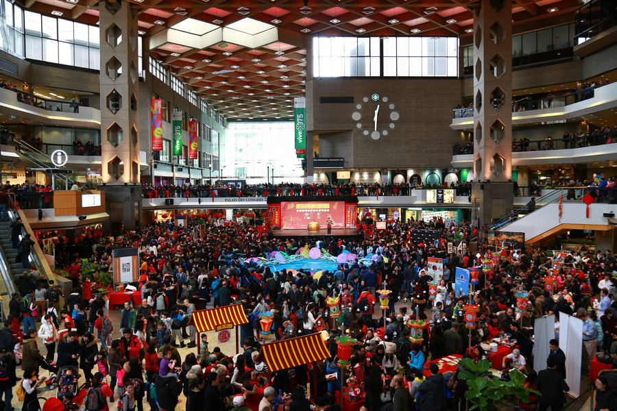 Consul General of the Chinese Consulate General in Montreal addresses the opening ceremony of the first "Happy Chinese New Year" temple fair in Montreal on Jan 14, 2017. [Photo by Yu Hong]