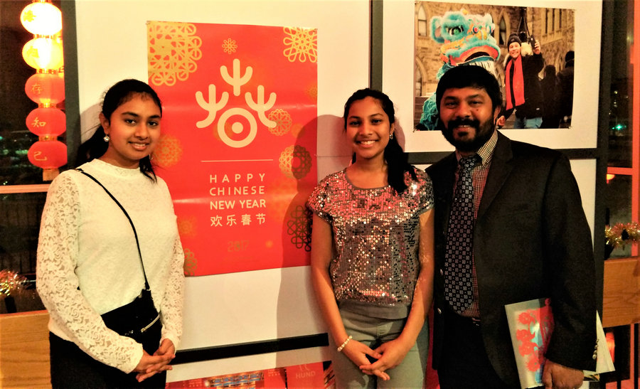 Local residents pose for a picture at a Chinese New Year celebration at the Chinese Embassy in Canada on Jan 25, 2017. [Photo by Lv Yongjiu]