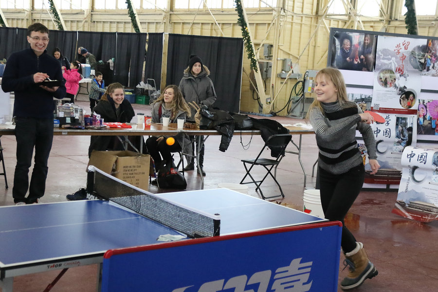 乒乓球打得不錯(cuò)! 2月12日,2017渥太華新春大廟會(huì),各類美食及文化體育活動(dòng)分外熱鬧。[攝影:陳勇衛(wèi)]